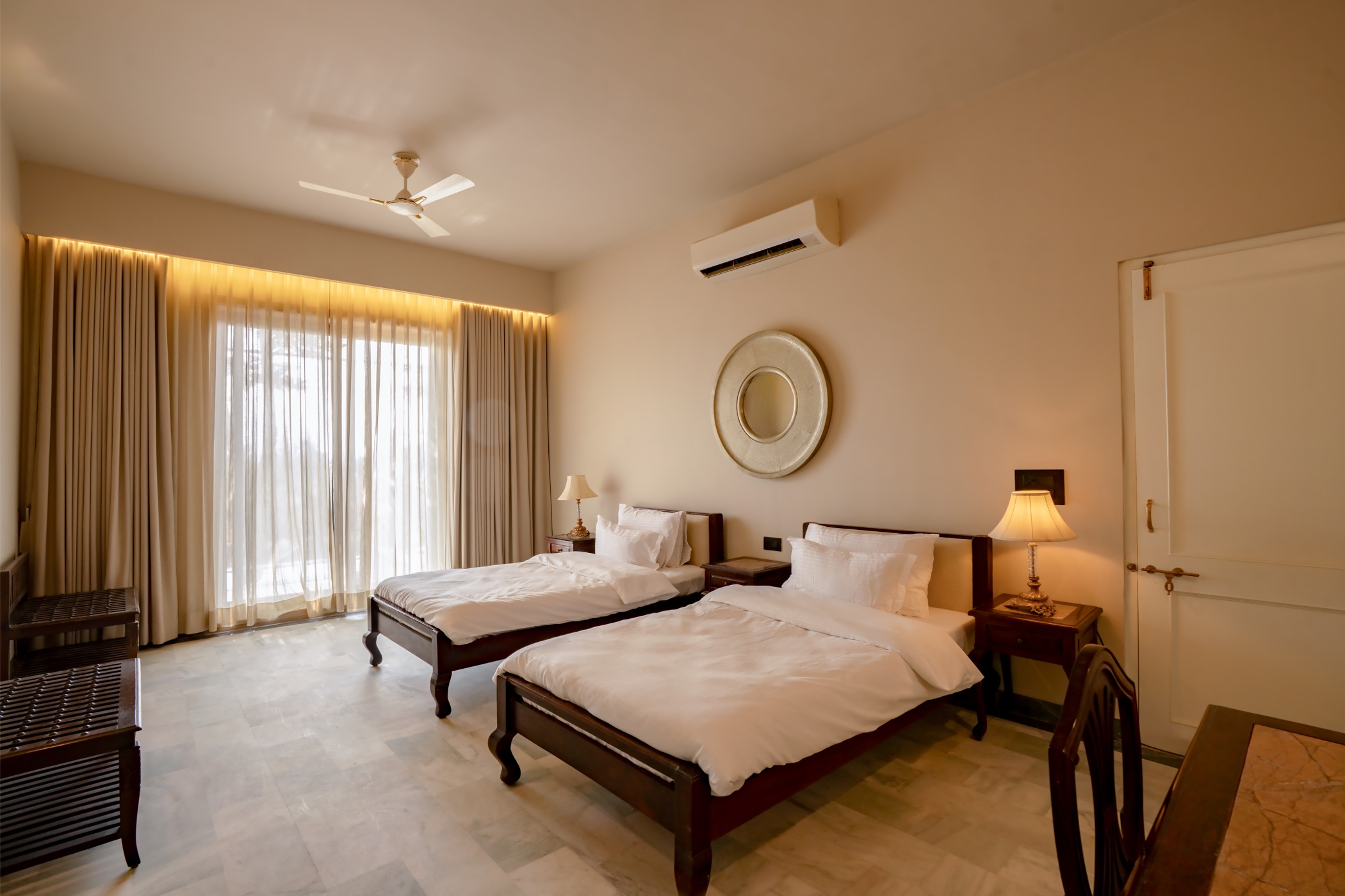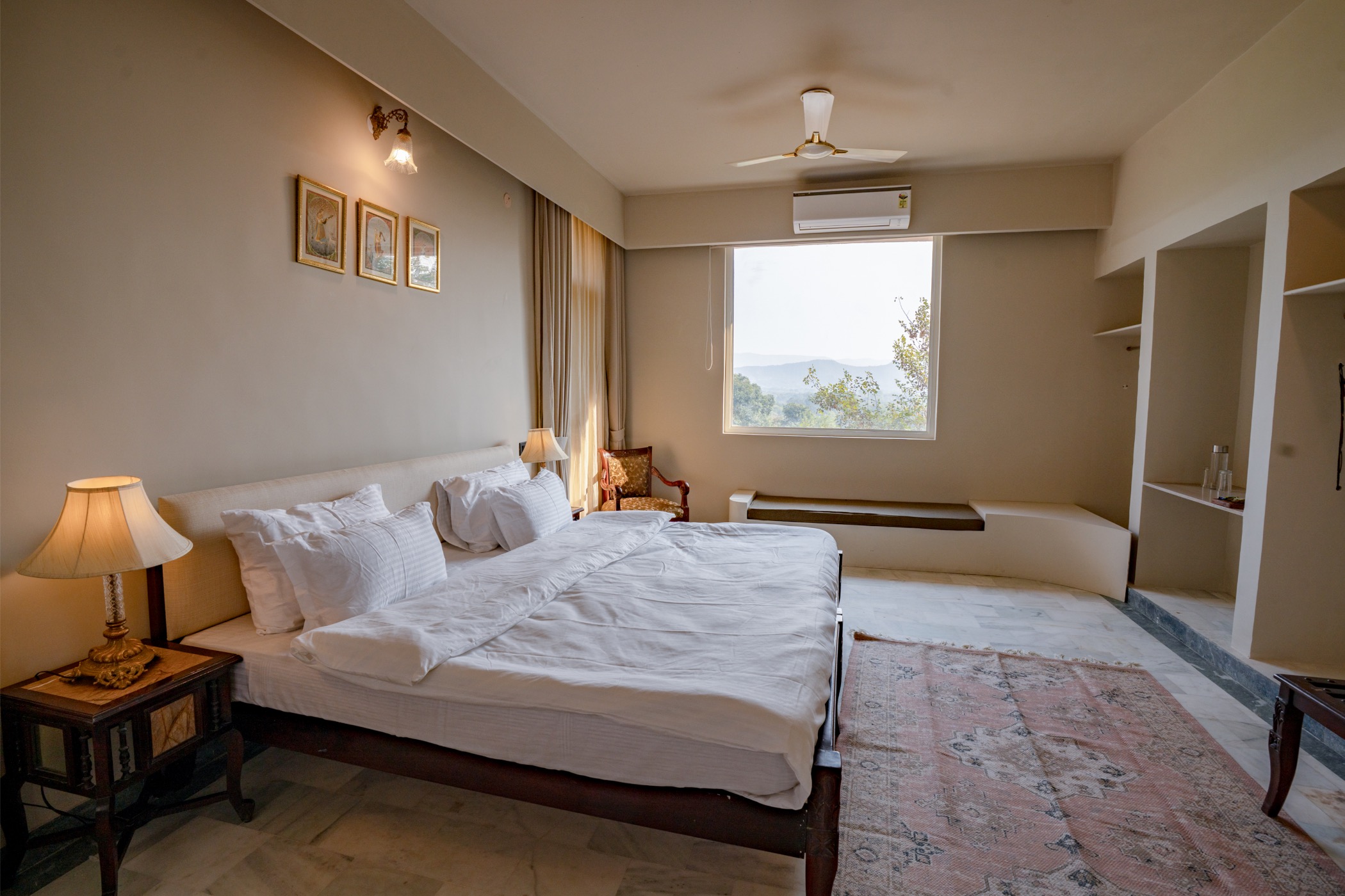 At Bagheera Retreat Pushkar, rooms are designed to offer calm, privacy, and a deep connection with the surrounding Aravalli landscape. Guests can choose between Hill View Rooms (Twin/Queen), which open to sweeping views of the hills and feature private sit-outs for quiet mornings and slow sunsets, or Plunge Pool Rooms (Twin/Queen), created for a more secluded experience with a private plunge pool and outdoor space that encourages unhurried relaxation. Both categories share the same philosophy of understated luxury—spacious interiors, warm natural tones, and modern comforts integrated seamlessly—allowing guests to slow down, disconnect from excess, and settle into a rhythm shaped by nature rather than schedules.